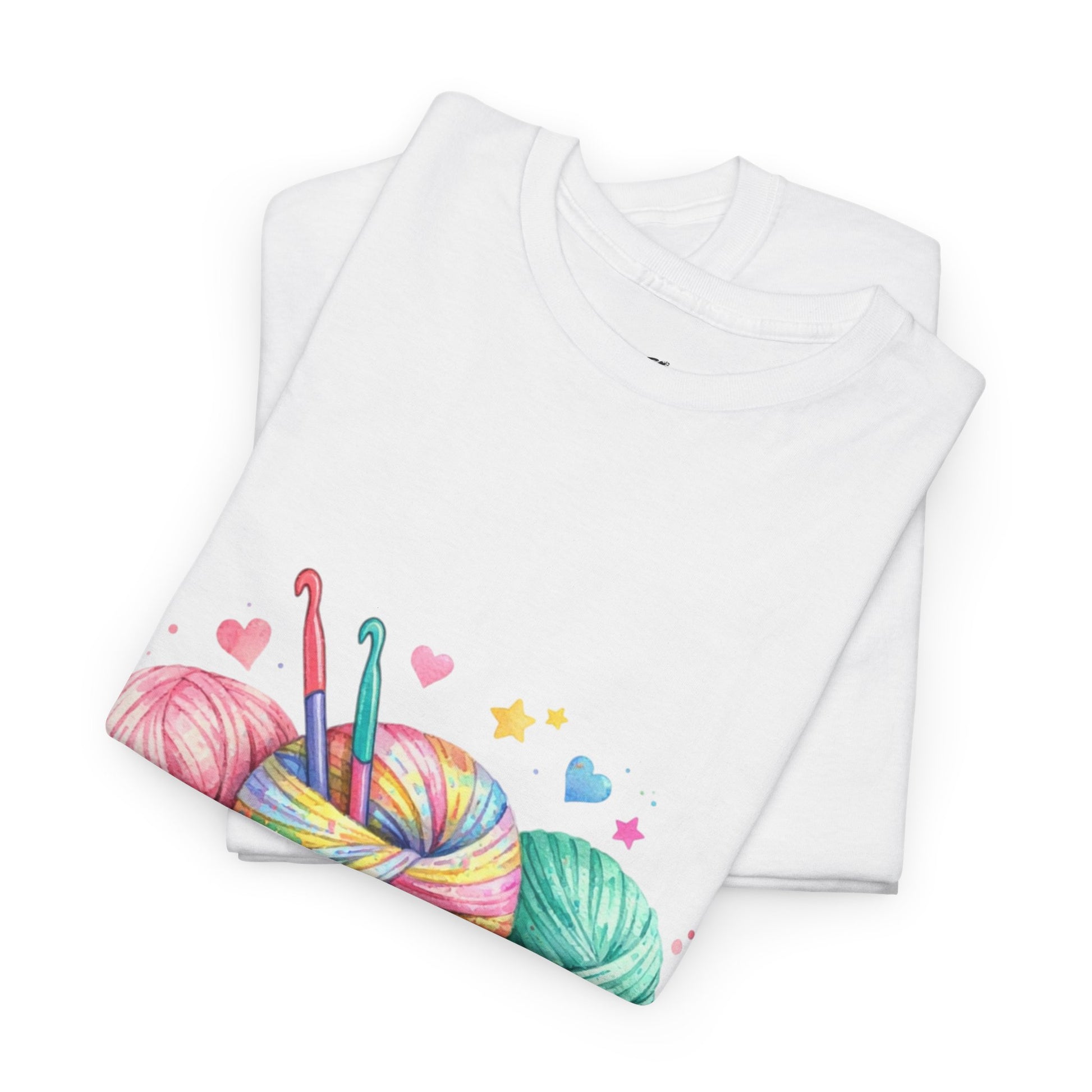 Soft, comfortable, and full of crafty personality — this tee celebrates the slow, cozy joy of crochet. Bright watercolor-style yarn balls and hooks grace the front with the playful line “Hooked on Crochet,” while the back continues the story with a colorful skein-stacked composition and the cheeky slogan “I’m a Hooker — on the yarn & the charm.” Lightweight yet durable cotton keeps the silhouette relaxed for long stitching sessions or coffee-shop meetups. Wear it when you’re curled up with a new pattern, teaching a friend, or popping into a yarn swap — it feels lived-in and friendly from the first stitch.